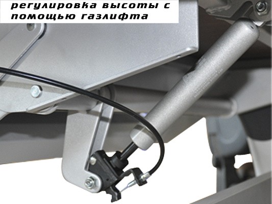 Высота столешницы изменяется с помощью газ-лифта немецкой компании Stabilus, это обеспечивает плавность и безопасность регулировки.