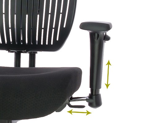 Кресло комплектуется удобными подлокотниками, которые регулируютя в 2-х направлениях: по высоте и ширине.