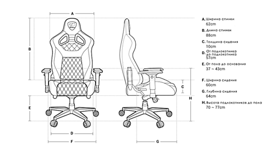 • Размер сиденья (ШхГхВ): 53 x 50 см