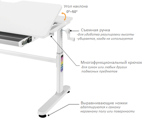 Формирование здоровых привычек, которые ребенок сможет перенести во взрослую жизнь, можно начать с того, что снабдить его эргономичным письменным столом. Рекомендуем использовать детский стол Iris с регулируемой высотой. Регулируемый по высоте рабочий стол и наклоняемая столешница позволяет ребенку улучшить осанку во время выполнения школьных заданий или хобби, таких как рисование или письмо. Это не только отличное дополнение к любой детской комнате, но и идеальное решение для школы, библиотек и т.п.