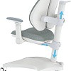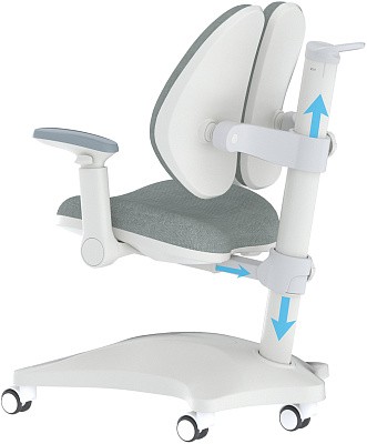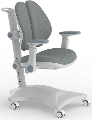 Спинка кресла сделана из дышащего материала, что обеспечивает комфорт в летний период времени. Ее ортопедическая форма обеспечивает правильное формирование осанки ребенка. Специальный дизайн спинки имеет две части которые производят эффект формирования осанки и ровных лопаток, сниманию негативных ощущений защемления мышц спины.