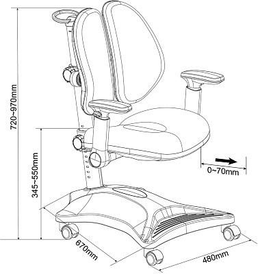Для детей от 3 лет и до подросткового возраста. Подходит для роста от 110 до 170 см. Можно использовать как с растущей партой, так и с обычным письменным столом. Изменяя глубину спинки и высоту сидения, Вы подберете наиболее комфортное положение для ребенка. Колеса имеют функцию стоп-вращения при посадке в кресло ребенка свыше 15 кг. Кресло имеет подставку для ног.