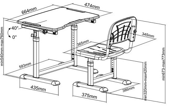 Поверхность учебного стола можно наклонять до 40 ° для удобного письма, чтения и рисования.