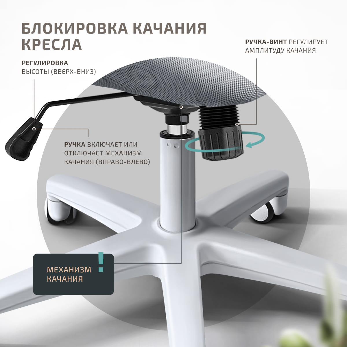 Изменение высоты сиденья происходит максимально легко. Вам достаточно нажать рычаг, чтобы быстро подстроить кресло под свой рост и рабочий стол, обеспечивая тем самым здоровую и правильную позу