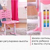 Высота стульчика легко регулируется одной рукой и надежно фиксируется винтами. Эргономичный дизайн стульчика повторяет контуры спины и бедер, в результате поддерживается здоровая осанка и нормализуется кровообращение. На ножке стульчика также есть шкала соотношения роста ребенка и высоты стульчика. Выбрав оптимальное соотношение параметров комплекта и роста ребенка, можно создать максимально комфортные условия для учебы и творчества.