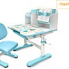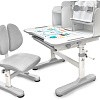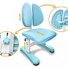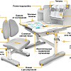 Главной особенностью комплекта является растущее кресло с двойной ортопедической спинкой и мягким съемным сиденьем, обтянутым мебельной дышащей тканью. Кресло регулируется по высоте и глубине специальными винтами. Максимальная нагрузка - 60 кг. На каркасе крепится ручка для удобного перемещения кресла по комнате.