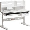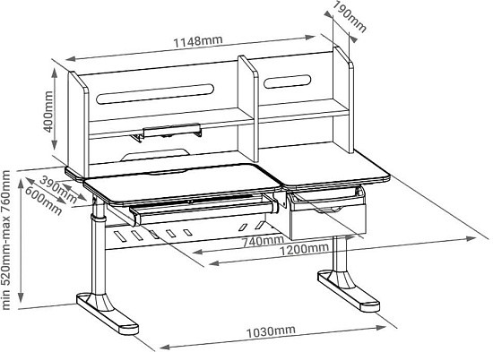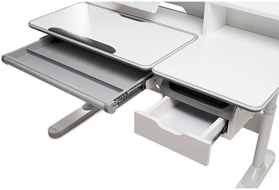 Вместительная надстройка в совокупности с тремя выдвижными ящиками, позволяет хранить все принадлежности для обучения в одном месте. Два из трех ящиков имеют секционное разделение, для комфортного хранения карандашей, ручек и прочей мелкой канцелярии.