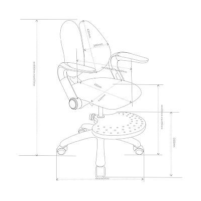 Кресло имеет регулировку высоты сиденья от 430 до 550 мм, что позволяет адаптировать его под рост ребенка.