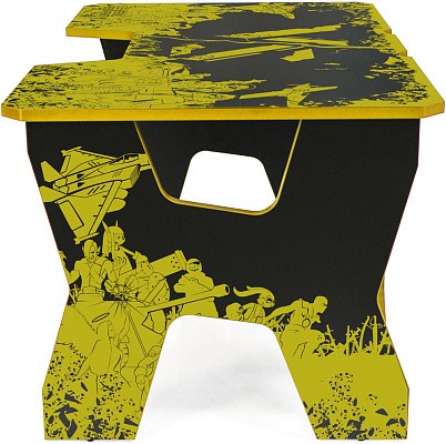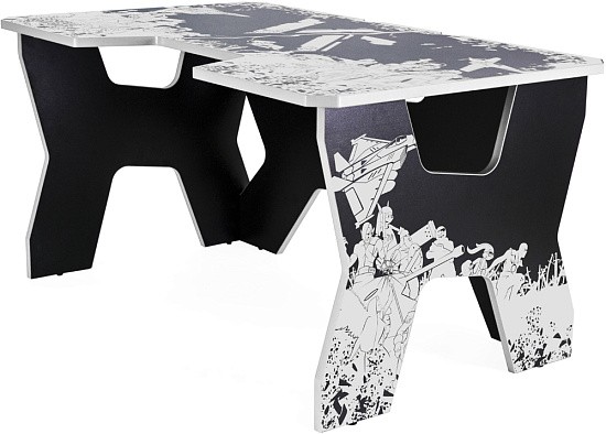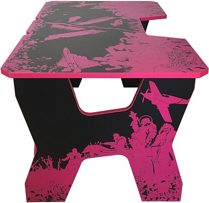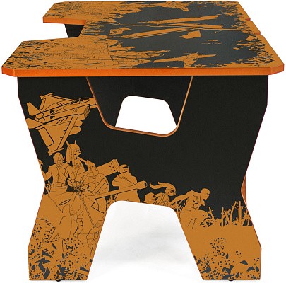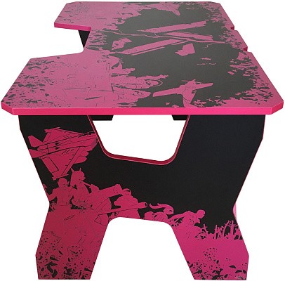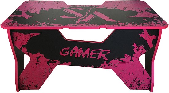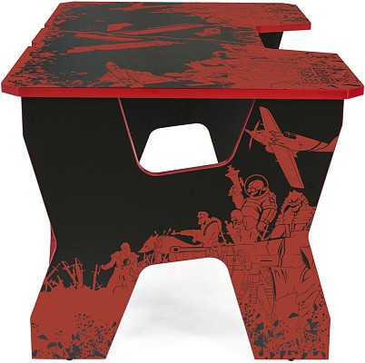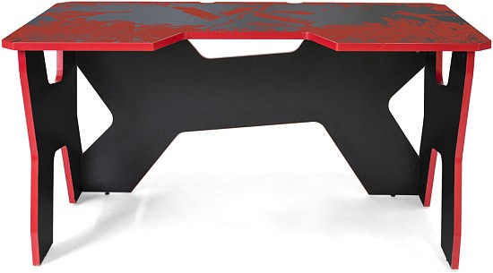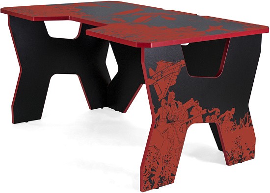 Generic Comfort Gamer2/VS - стильный компьютерный стол с необычным дизайном. Кромки стола выполнены в красном цвете, а на черную основу методом ультрафиолетовой печати нанесен красный рисунок. За счет такой технологии, изображение получается ярким, насыщенным и при этом долговечным, с высокой стойкостью к истиранию. Рисунок наносится дополнительным слоем, вследствие чего выступает на 0,2 мм над поверхностью. Поэтому, на данном столе рекомендуется использовать коврик для мышки.