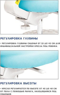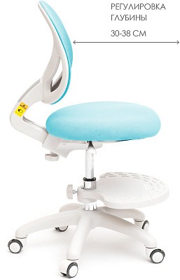 Детское кресло Holto-36 для детей от 3 лет и до подросткового возраста. Подходит для роста от 110 до 170 см. Можно использовать как с растущей партой, так и с обычной. Изменяя глубину спинки и высоту сидения, Вы подберете наиболее комфортное положение для ребенка. Колеса имеют функцию стоп-вращения при посадке в кресло человека свыше 25 кг. Малыш не будет отвлекаться от уроков, катаясь на кресле. Кресло имеет регулируемую подставку для ног, которую можно снять при необходимости.