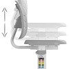 Детский комплект: Растущая парта и стул SET Holto-12 подойдет деткам от 7 лет. Столешница регулируемая и имеет 2 положения 0 градусов и положение "Мольберт" для рисования. Неотражающая поверхность защищает глаза от бликов и отражений. Удобный выдвижной лоток для книг, бумаг, канцелярских принадлежностей... Многофункциональный стальной крюк для школьной сумки или любых других подвесных предметов. Дышащая сетчатая спинка добавляет циркуляцию воздуха и охлаждение (особенно в летнее время года). Регулировка глубины сиденья обеспечивает более комфортную и правильную посадку ребенка.