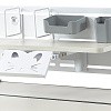 Также, полка дополнена пластиковыми пеналами для канцтоваров. Пеналы можно перемещать по металлической стенке полки.