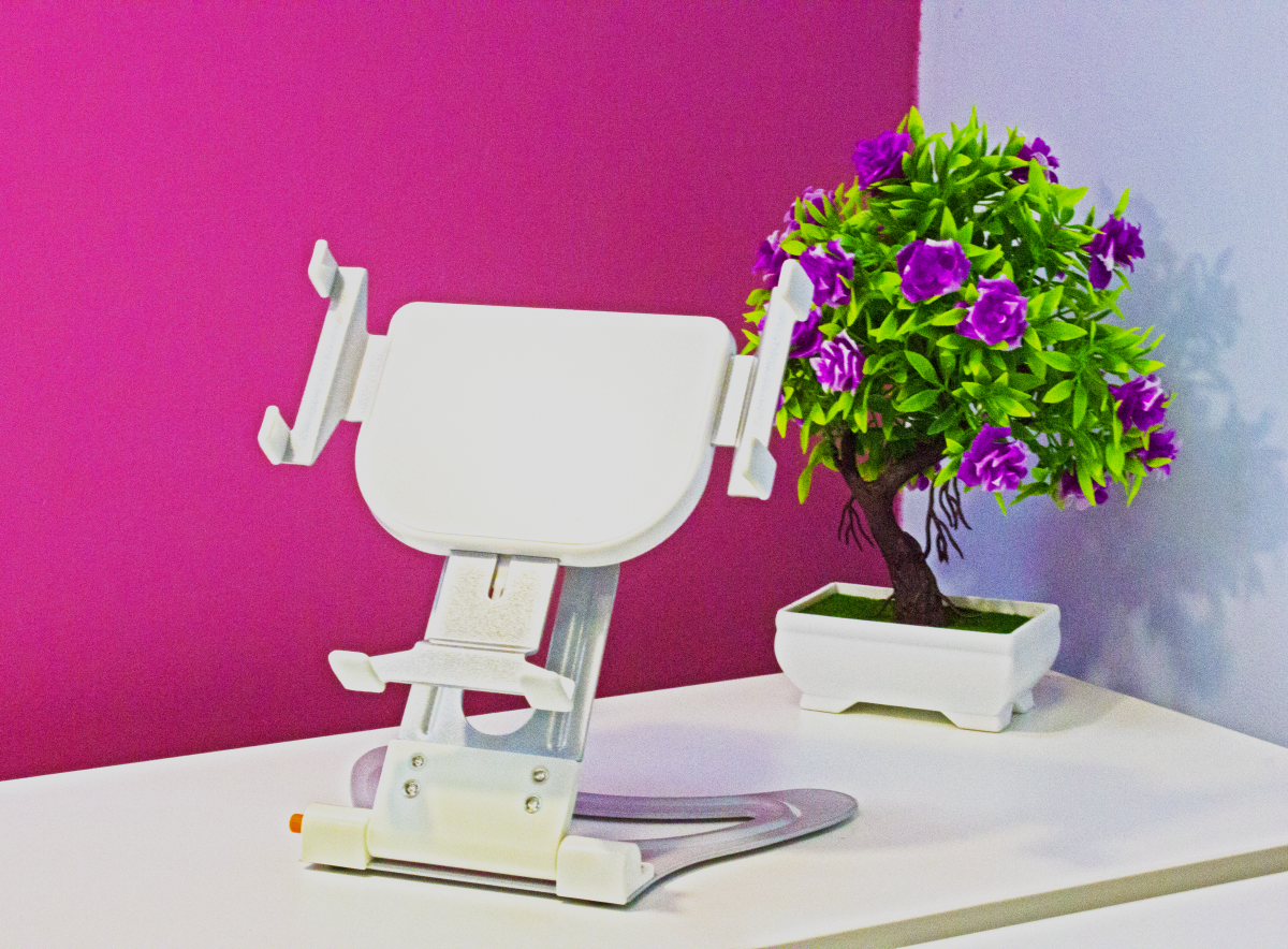 Благодаря тому, что подставку можно складывать, её удобно брать с собой, так как она будет занимать минимум места в сумке.
