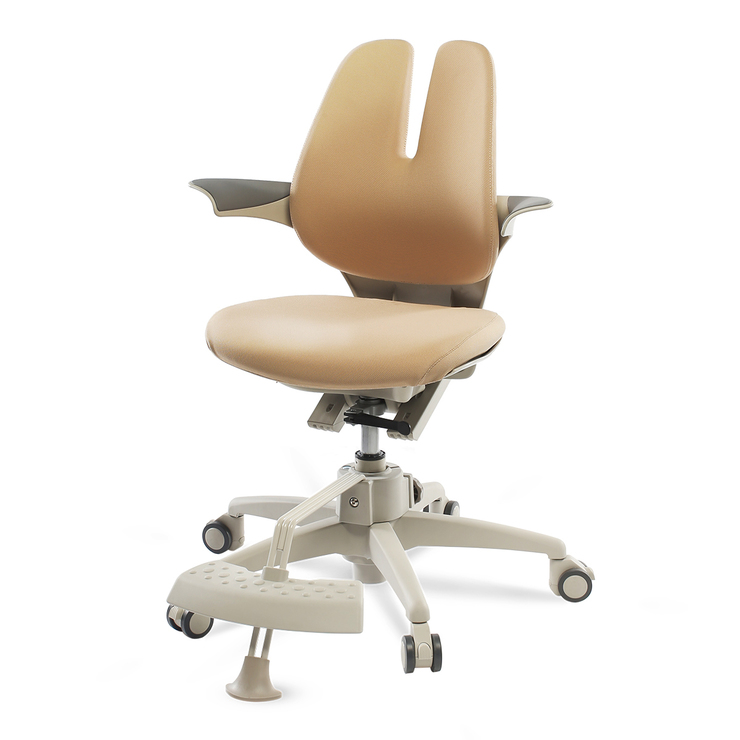 Высокая спинка имеет ярко выраженный ортопедический обхват, помогает пользователю добиться правильного расположения всех отделов позвоночника и поясницы. Она сделана с применением технологии Duoflex, регулируется по росту, в глубину, что позволяет персонализировать ее под особенности телосложения в период интенсивного роста.