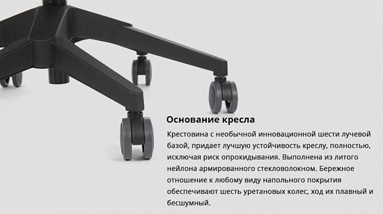 Для обивки кресел Альфа был разработан специальный материал - Thermoplastic polyester, который обладает хорошим запасом прочности и отличной воздухопроницаемостью.