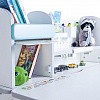 Удобным дополнением для стола является полка - надстройка с двумя полочками поменьше и шкафчиком с металлической дверцей. Теперь книги и тетради всегда будут на своих местах. Задняя стенка надстройки металлическая, ее можно использовать для закрепления заметок магнитами, а также для удобного хранения письменных принадлежностей в двух подвесных емкостях. Прекрасным дополнением к полке является прочная выдвижная подставка для книг с изменяемым углом наклона. При необходимости подставка складывается.