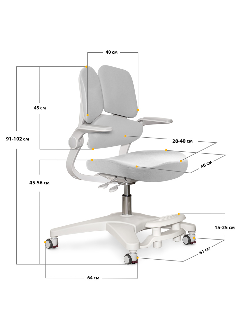 Кресло имеет дополнительную поддержку поясницы с возможностью регулировки высоты и глубины положения. Наличие регулировок позволит максимально точно подобрать настройки под параметры ребенка и уменьшит нагрузку на нижний отдел позвоночника.