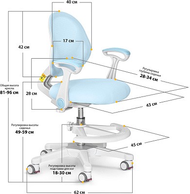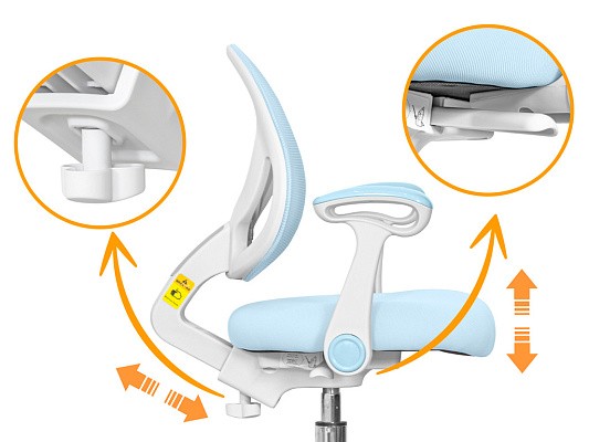 Плавную регулировку высоты кресла обеспечивает механизм газлифт. У кресла синхронная регулировка глубины сиденья и высоты спинки, что меняется с помощью винта-фиксатора.