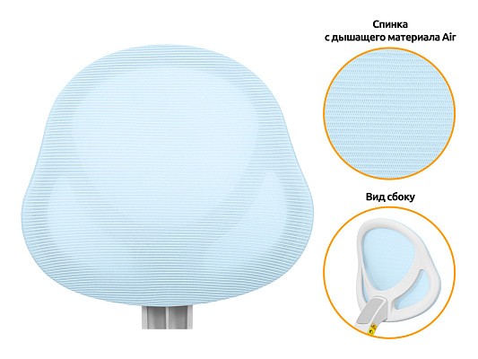 Спинка из дышащего материала Air отлично подходит на летний период. Ее ортопедическая форма обеспечивает правильное формирование осанки ребенка.