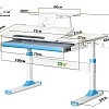 Стол дополнен съемной полкой, на которой можно размещать учебники. Полка имеет регулируемую металлическую подставку для книги. Подставка для книг находится на безопасном расстоянии от глаз ребенка, таким образом сохранится зрение. По окончанию работы, подставку можно задвинуть.