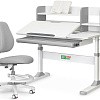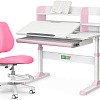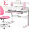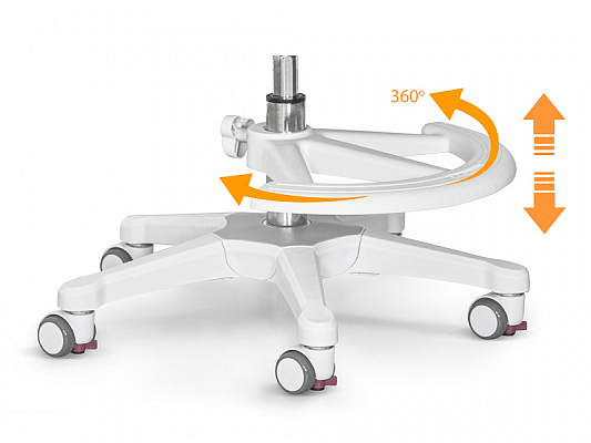 Столешница разделена на две части. Подвижная часть изменяет угол наклона до 60 градусов с помощью газлифта, что позволяет подобрать положенияе для чтения, письма, рисования. Для безопасности регулировки детьми на краю столешницы предусмотрен специальный зазор.