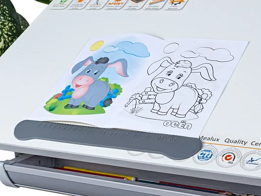 Наличие съемного прорезиненного барьера на столешнице предотвращает скатывание предметов во время выполнения домашнего задания.
