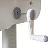 Высота стола регулируется с помощью червячного механизма ручкой, которую при сборке можно установить справа, либо слева.