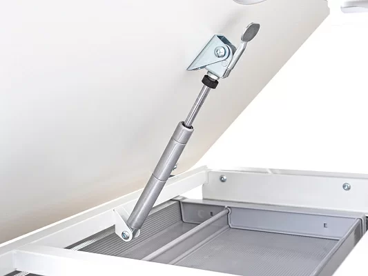 С помощью газлифта подвижная часть столешницы меняет угол наклона до 60 градусов. Столешницу с отрегулированым углом наклона можно использовать для письма, чтения и рисования.