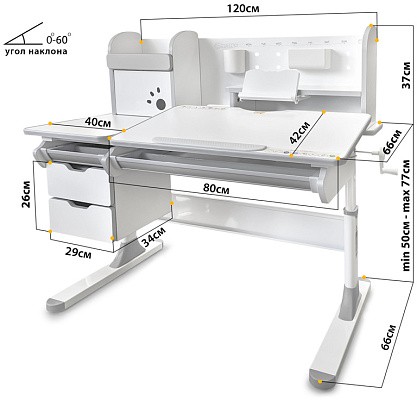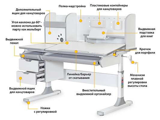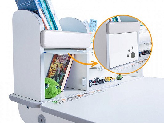 Наличие съемного прорезиненного барьера на столешнице предотвращает скатывание предметов во время выполнения домашнего задания.