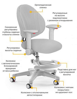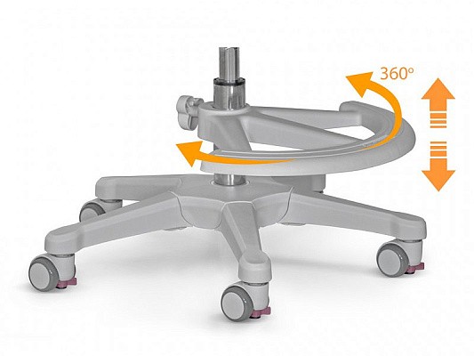 Функциональная особенность кресла - съемная подставка для ног, которая регулируется по высоте и вращается вокруг своей оси. Благодаря этому кресло можно использовать вместе со стандартным нерегулируемым столом.