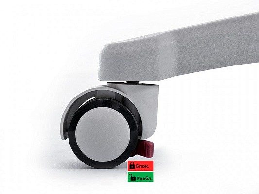 Нейлоновые колесики оснащены отключаемыми стопорами. Благодаря данной функции можно вручную блокировать передвижение кресла по комнате.
