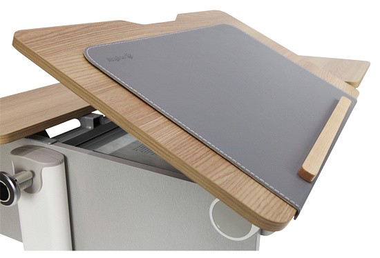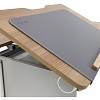 SingBee CB-M01 является не только защитой рабочей поверхности от повреждений, но и значительно добавляет комфорта во время учебы. Накладка выполнена из металла, благодаря чему плотно и надежно располагается на столе, а магниты, установленные в столешнице, усиливают крепление. Обивка выполнена из высоко качественной эко кожи, позволяющей без труда оттереть загрязнения, а также сделать письмо более комфортным за счёт мягкости материала. Серый цвет обивки отлично сочетается с боковыми фасадами стола, а белая строчка по краям придает эстетический вид. Для предотвращения падения книг во время изменения наклона и облегчения процесса рисования в комплекте идет магнитный ограничитель, который можно разместить в любой части накладки, а при необходимости снять.