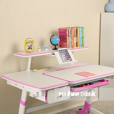 «ФанДеск» могут регулировать высоту парты под рост ребенка, а столешница может изменять угол наклона. Каждую модель можно оборудовать дополнительными аксессуарами. Парта «FunDesk» имеет множество ящиков для хранения канцелярских принадлежностей и тетрадей.