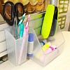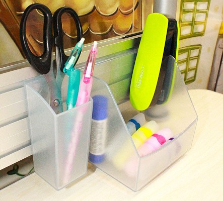 Удобные передвижные контейнеры позволяют разместить в них ручки, фламастеры и другие канцелярские принадлежности.