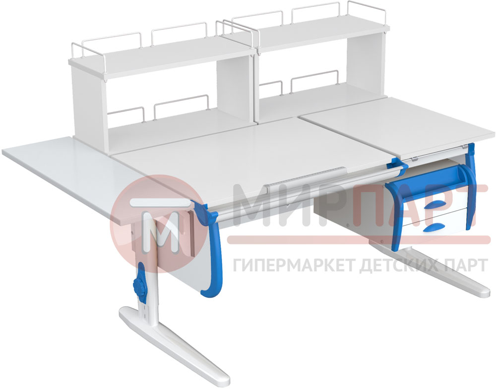 Парта 120 см с раздельной столешницей + тумба + 2 задние двухъярусные приставки + боковая приставка 75 см