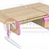 Функциональность парты также на высоте: раздельная столешница предоставляет возможность создания двух рабочих зон. Неподвижная часть отводится под хранение книг и учебников, в то время как угол наклона подвижной части легко может меняться, в зависимости от рода занятия ребенка – чтение, письмо, рисование или черчение. Тумбочка с двумя просторными ящиками и открытый пенал помогут школьнику разместить те вещи, которые не нужны постоянно, но должны оставаться под рукой. Две задние приставки плюс короткая боковая полочка завершают картину, создавая в итоге настоящий рабочий кабинет.