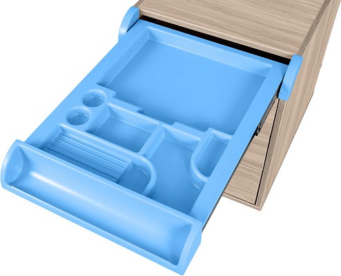 Используя принцип модульности, характерный для мебели «Дэми», покупатель может подобрать элементы для создания идеального рабочего уголка школьника.
