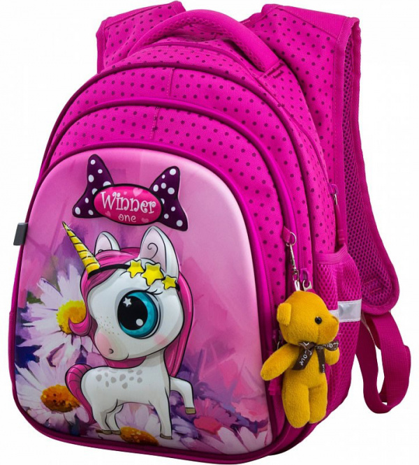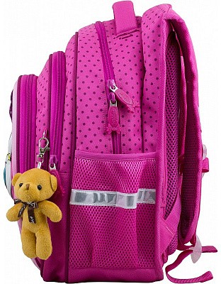 В рюкзаке три отделения. Первое основное и второе отделения без наполнения. Третье отделение с органайзером для письменных принадлежностей. По бокам два кармана-сеточки на резинке.