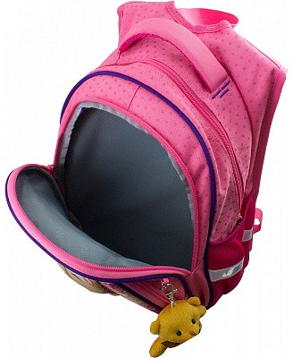 В рюкзаке три отделения. Первое основное и второе отделения без наполнения. Третье отделение с органайзером для письменных принадлежностей. По бокам два кармана-сеточки на резинке.